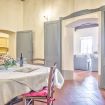 L’ingresso dell'appartamento è in una spaziosa stanza arredata con mobili in stile classico che può fungere da sala pranzo. Da qui si aprono due porte di cui una conduce al salotto, illuminato con due grandi finestre in stile inglese e da dove si vede una splendida vista sulla Val di Chiana e le colline circostanti mentre l’altra conduce alla cucina, spaziosa e ben organizzata e attrezzata con tutti gli elettrodomestici. Il salotto è arredato con divano e poltrone moderne, un grande e antico camino in pietra è stato riconvertito in una comoda seduta e alcuni mobili di antiquariato completano la zona soggiorno e la rendono accogliente ed ospitale. Due camere matrimoniali, un bagno con doccia ed un bagno con vasca completano questo appartamento facendone il luogo ideale per trascorrere un soggiorno piacevole. Tre gradini separano l’appartamento, quasi esclusivamente su un unico piano, dai due bagni.