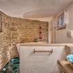 The main entrance opens onto an open space with a cozy living room, a fully-equipped kitchen and a dining area with French doors leading to the garden. One of the bedrooms is located on the same floor, a double with French doors that opens onto the garden. An internal staircase leads to the turret where there is the master bedroom with a double bed. One of the two bathrooms is located on the ground floor and it has a tub while the other one has a shower and is located on the first floor.