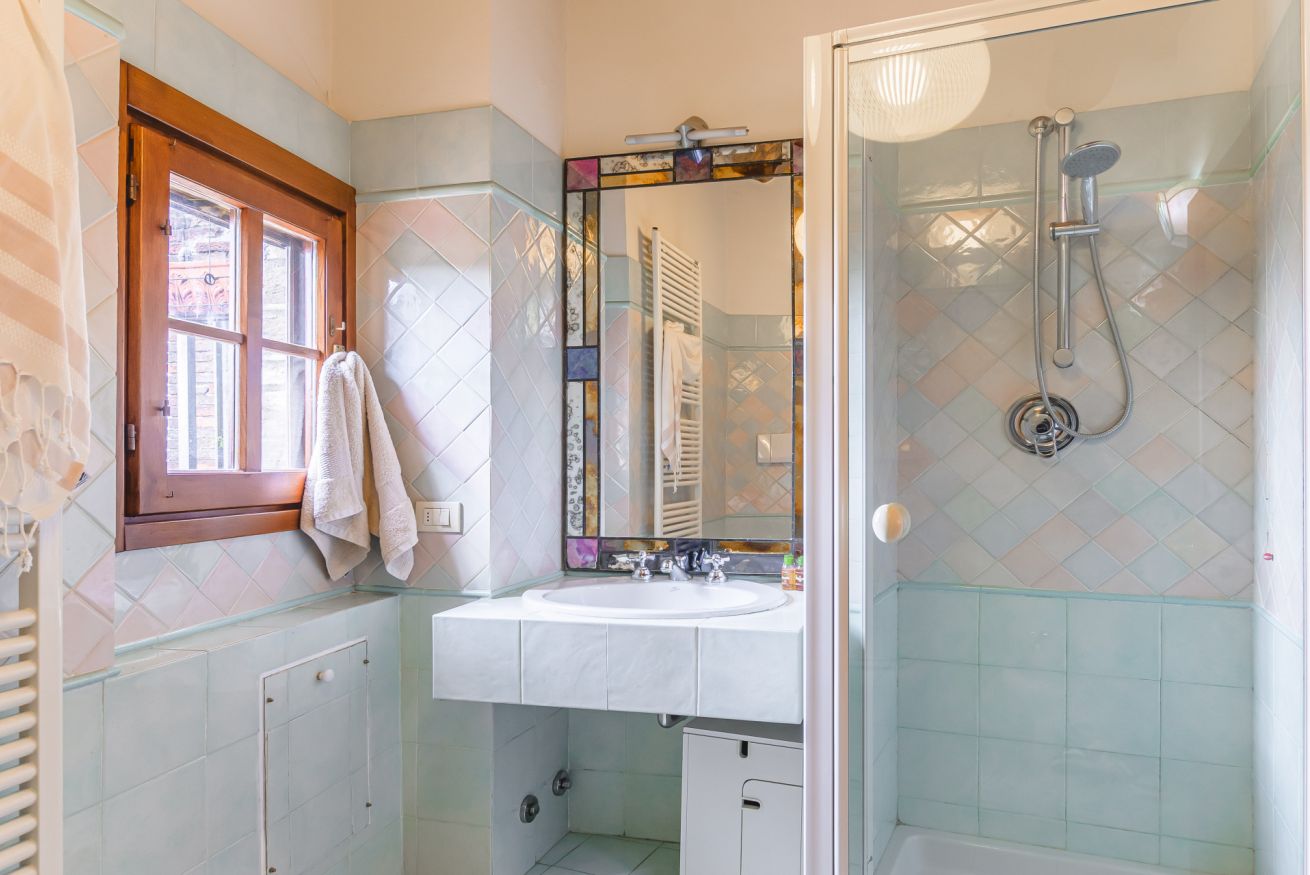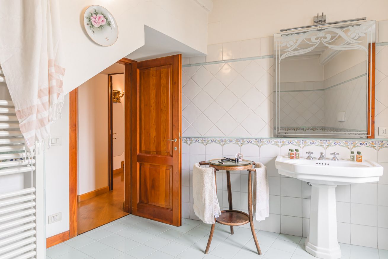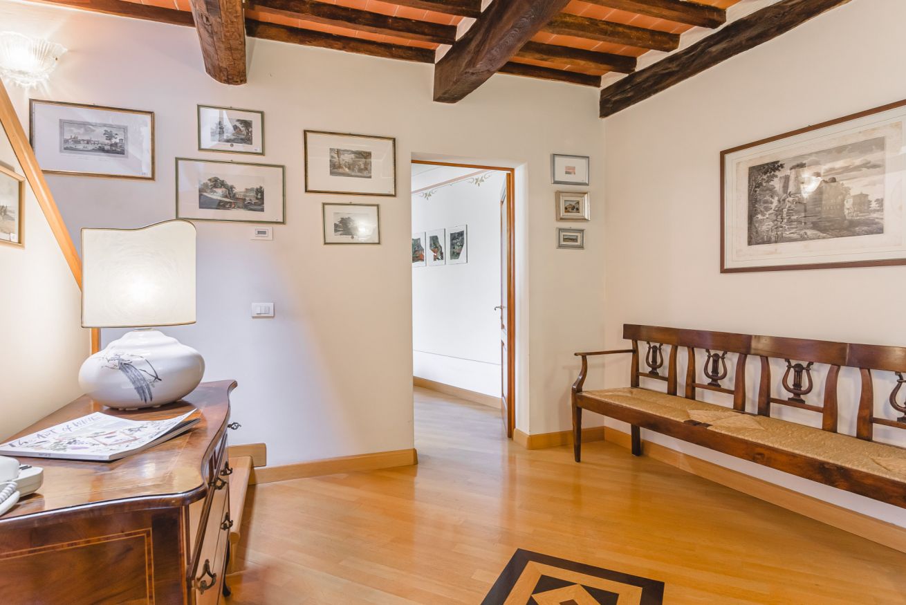 • Al secondo piano la zona notte ospita due splendide camere matrimoniali: una dotata di bagno doccia ensuite e l'altra servita da un raffinato bagno con vasca, perfetto per un momento di relax totale.