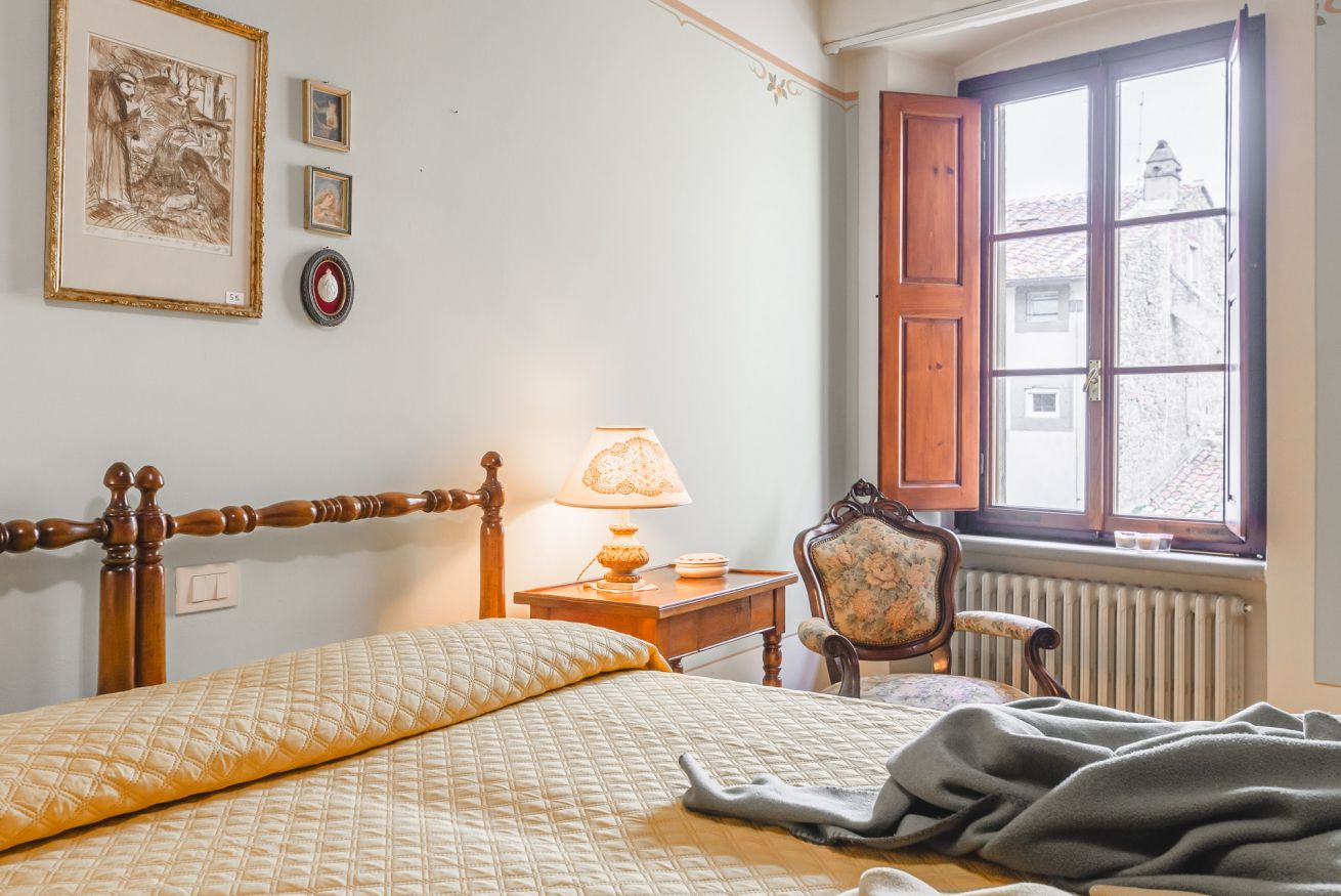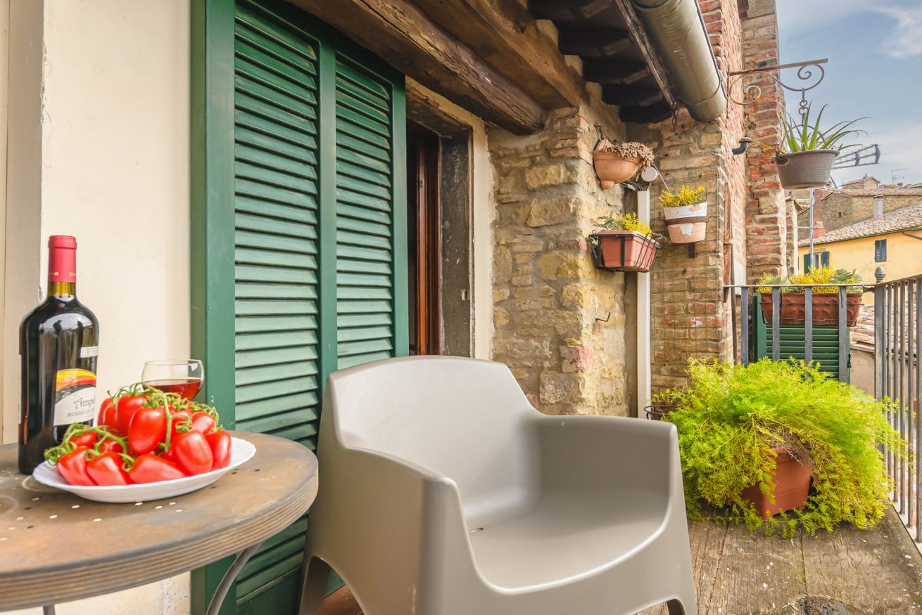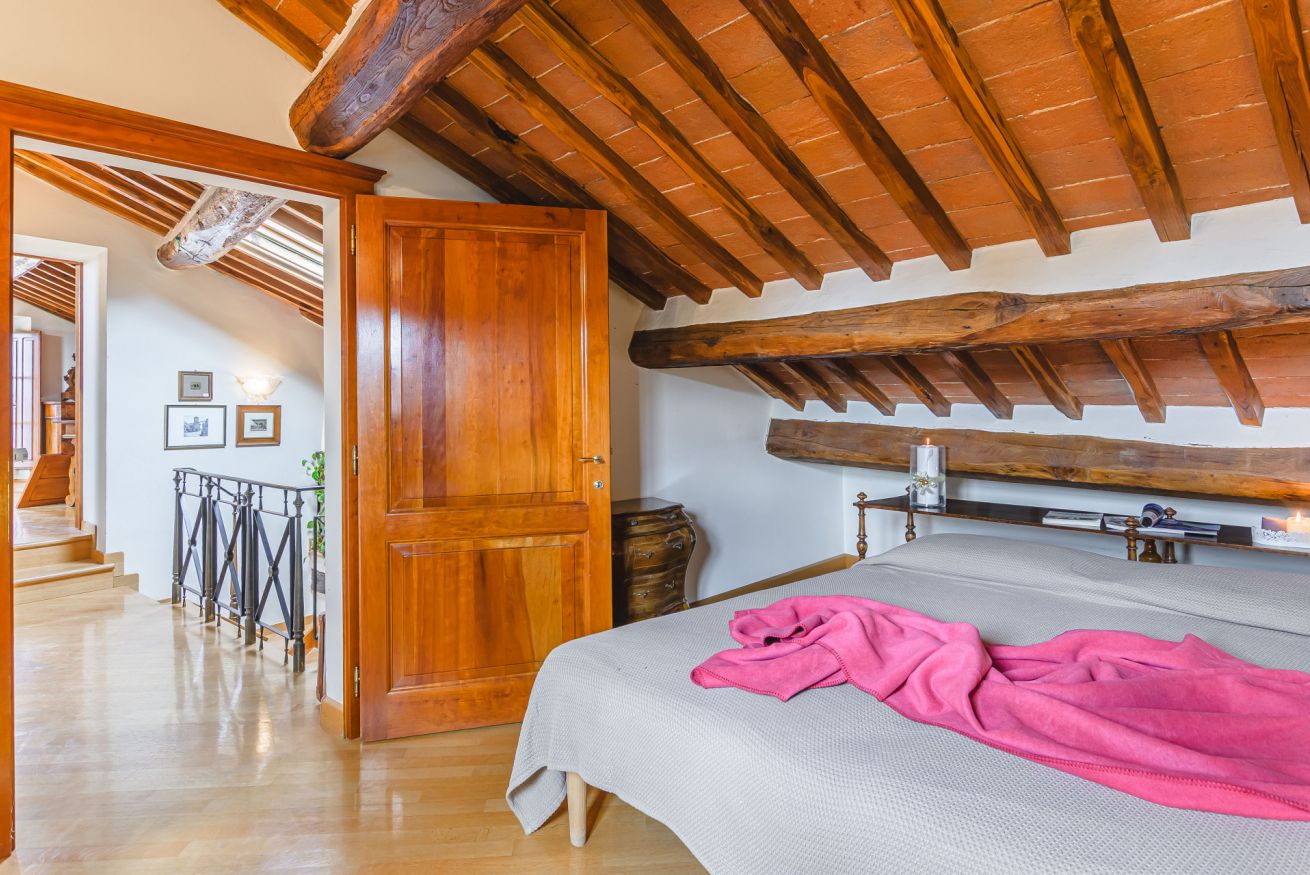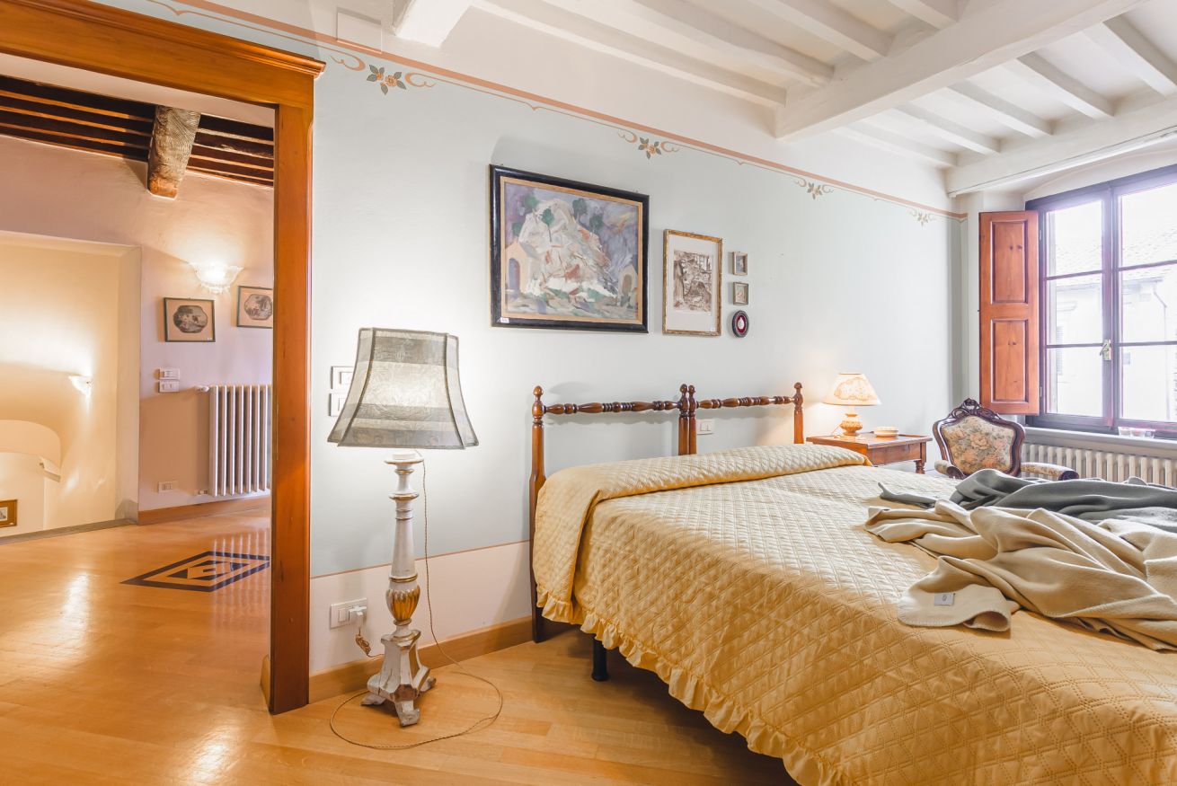 • Il terzo piano è invece dedicato alla mansarda con vista. Si trova qui infatti una terza camera matrimoniale con bagno doccia e un delizioso salotto "estivo". A completare il piano, un terrazzino con doppia veduta sui tetti di Cortona. Da un lato, una finestra incornicia lo skyline cittadino; dall’altro, un piccolo terrazzino privato attrezzato con poltroncine vi aspetta per ammirare tramonti indimenticabili, accarezzati dalla brezza toscana. È il luogo ideale per un aperitivo al fresco o per perdersi nel silenzio delle serate cortonesi.