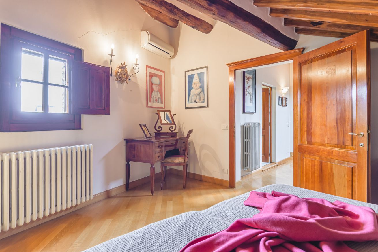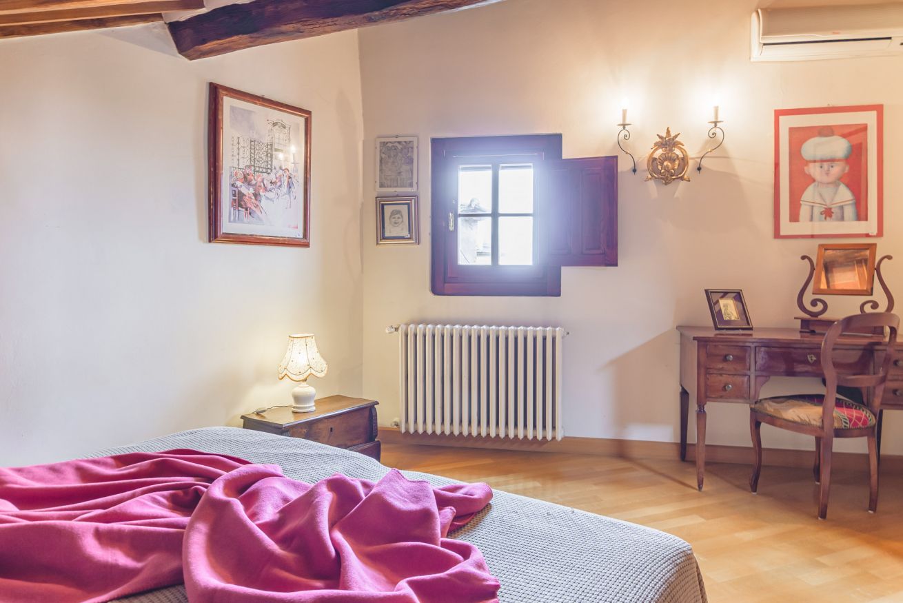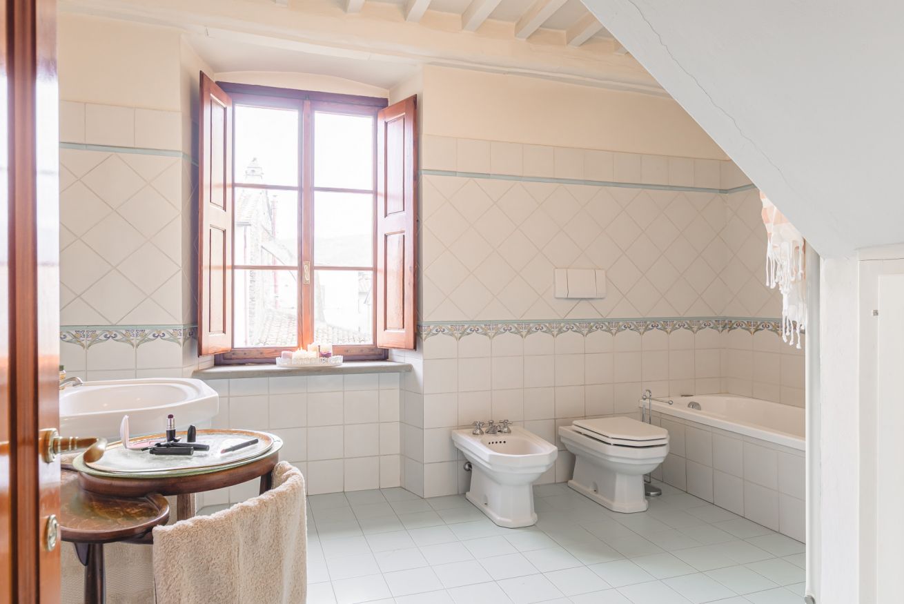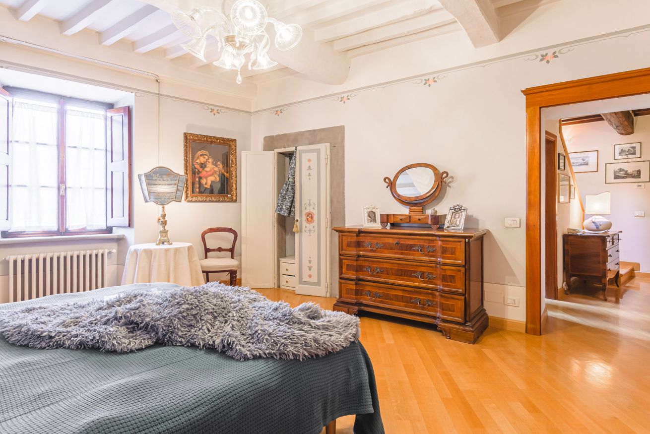 • Il terzo piano è invece dedicato alla mansarda con vista. Si trova qui infatti una terza camera matrimoniale con bagno doccia e un delizioso salotto "estivo". A completare il piano, un terrazzino con doppia veduta sui tetti di Cortona. Da un lato, una finestra incornicia lo skyline cittadino; dall’altro, un piccolo terrazzino privato attrezzato con poltroncine vi aspetta per ammirare tramonti indimenticabili, accarezzati dalla brezza toscana. È il luogo ideale per un aperitivo al fresco o per perdersi nel silenzio delle serate cortonesi.