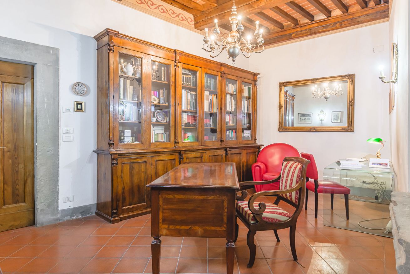 • Al piano terra, l’ingresso principale vi accoglie in un’atmosfera d’altri tempi. Qui troverete uno studio privato, pensato appositamente per chi desidera coniugare il piacere della vacanza con la necessità di seguire il proprio lavoro in totale tranquillità. Completa il piano una pratica zona lavanderia con lavatrice e asciugatrice.
